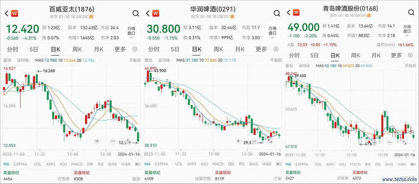 1月16日,港股啤酒股跌幅居前。