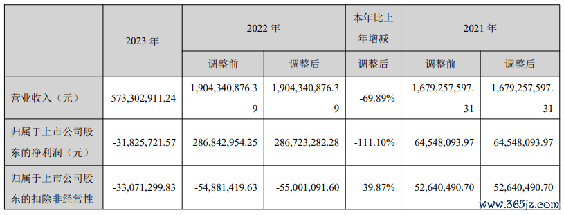 挖贝网4月26日,高澜股份(300499)近日发布2023年年度报告,报告期内公司实现营业收入573,302,911.24元,同比下滑69.89%;归属于上市公司股东的净利润-31,825,721.57元,同比由盈转亏。